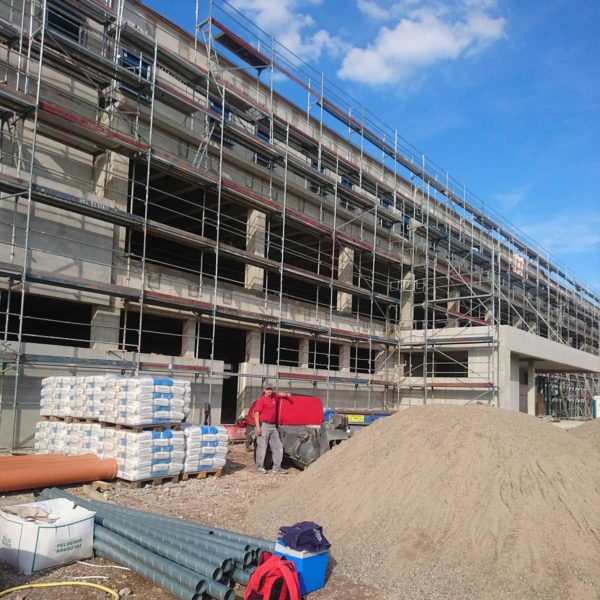 In Moormerland haben wir Ende 2019 in 11 Arbeitstagen ein Mehrfamilienhaus mit 16 Wohneinheiten mit ca. 1600 m² Zementheizestrich inkl. Dämmlage verlegt.