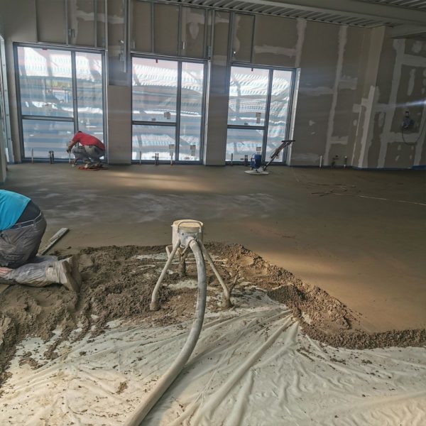 Mit der Aufstockung einer Schule und dem Neubau einer Mensa in Südbrookmerland haben wir in nur 8 Arbeitstagen im April 2020 circa 1300 m² schnellbindenden Zementestrich auf Dämmlage verlegt.